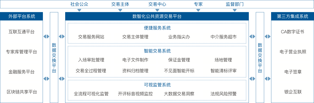公共資源交易平臺是公司面向各級公共資源交易中心客戶開發(fā)的一套集服務、交易、監(jiān)管為一體化的信息化平臺。運用大數(shù)據(jù)、人工智能等技術,實現(xiàn)“資源共享、集中服務、統(tǒng)一管理、依法監(jiān)督”,為公共資源交易中心構建公正開放、競爭有序、監(jiān)管有力、服務到位的公共資源交易管理服務體系。系統(tǒng)包括政府采購、建設工程、產(chǎn)權交易、土地(礦權)交易四大業(yè)務體系和內部綜合辦公系統(tǒng),既可以整體規(guī)劃建設,又可以根據(jù)實際情況任意單獨或組合建設。